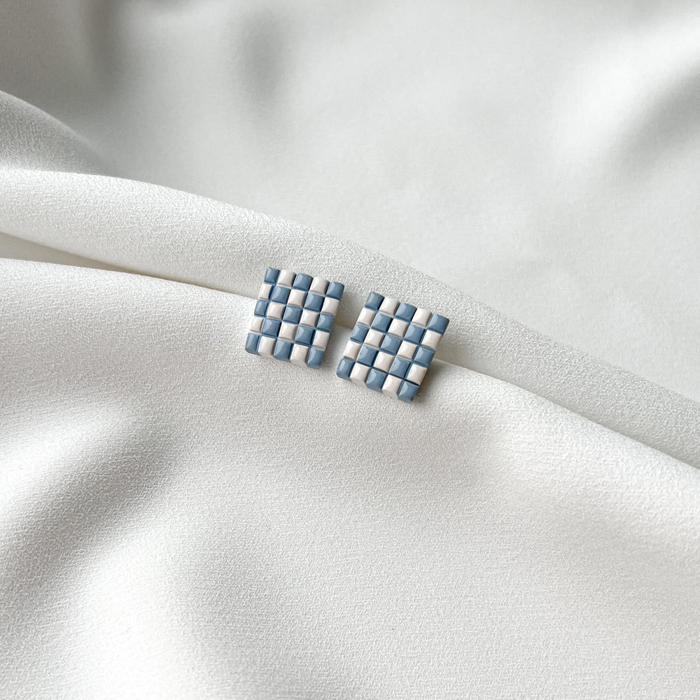 Auskarai | Bigger Chessboard_White/Blue