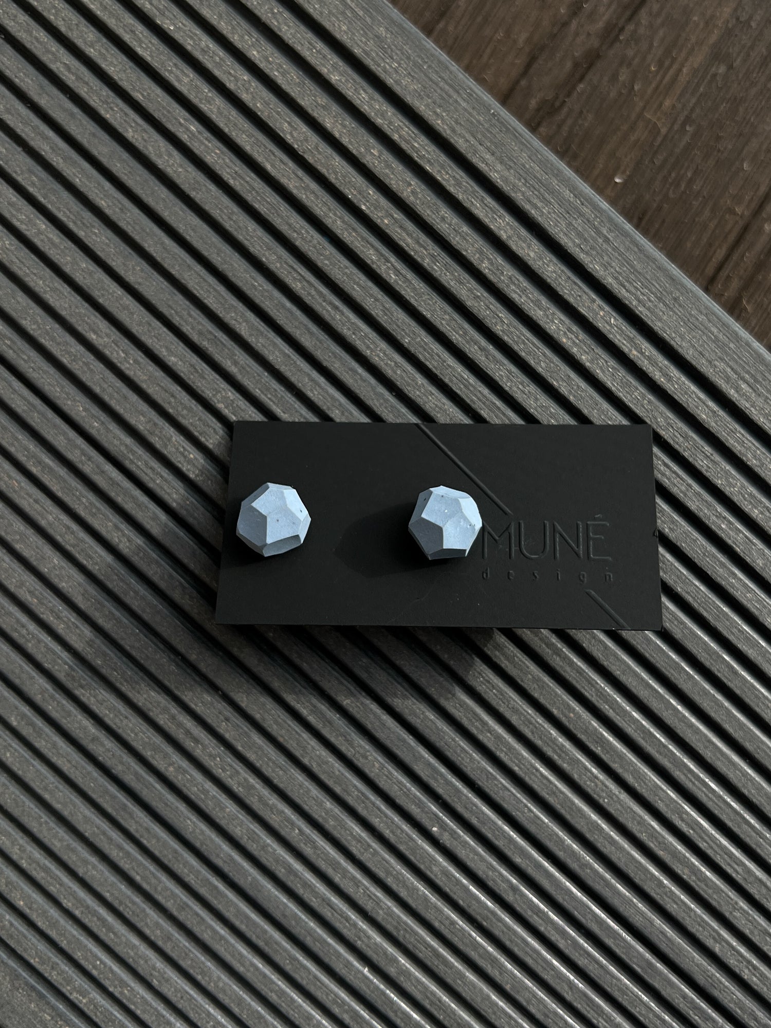 Geometriniai modernūs veriamieji auskarai. Itin lengvi. Medžiagos: polimerinis molis, nealergizuojantys, aukštos kokybės įvėrimai be nikelio. Skersmuo – apie 1,2 cm.