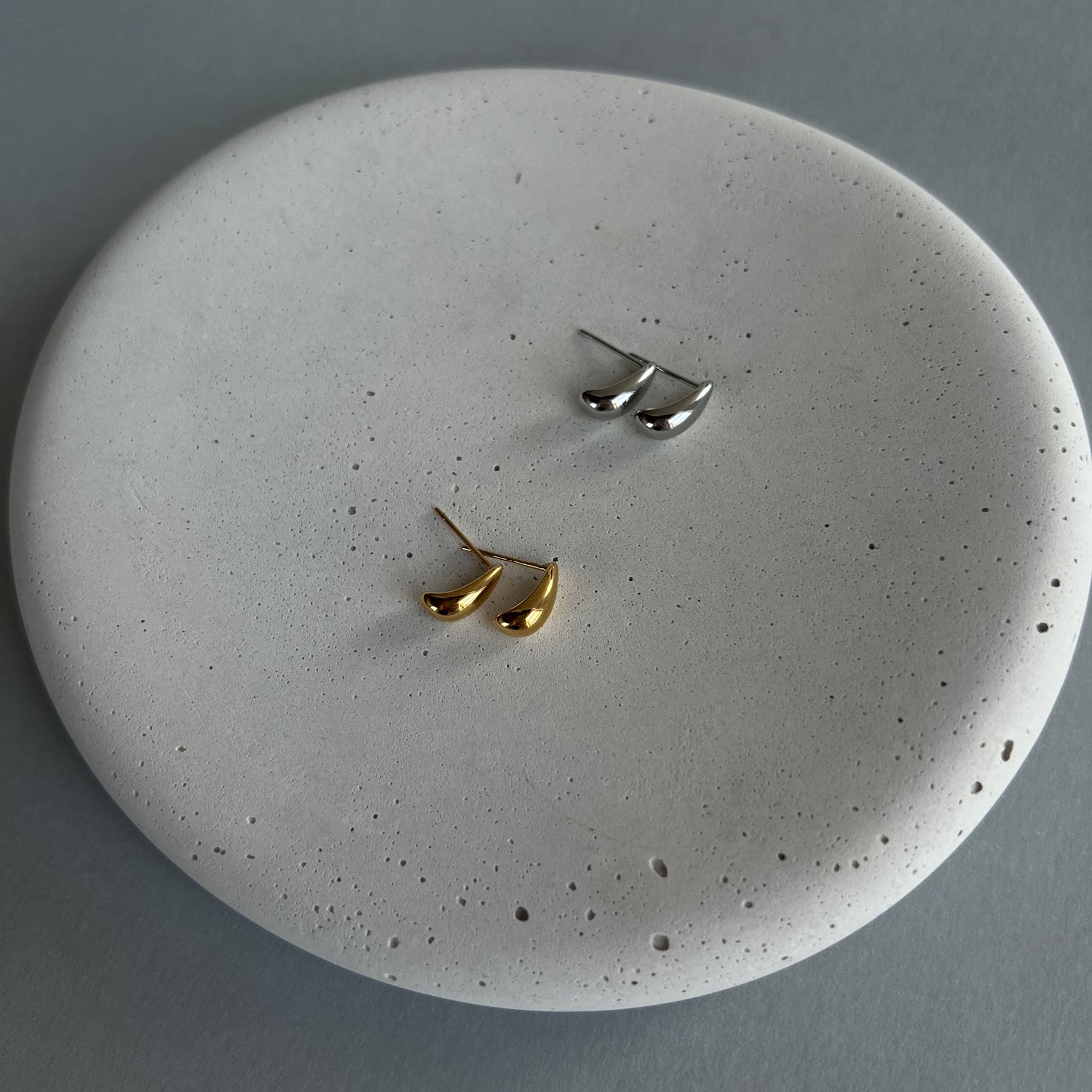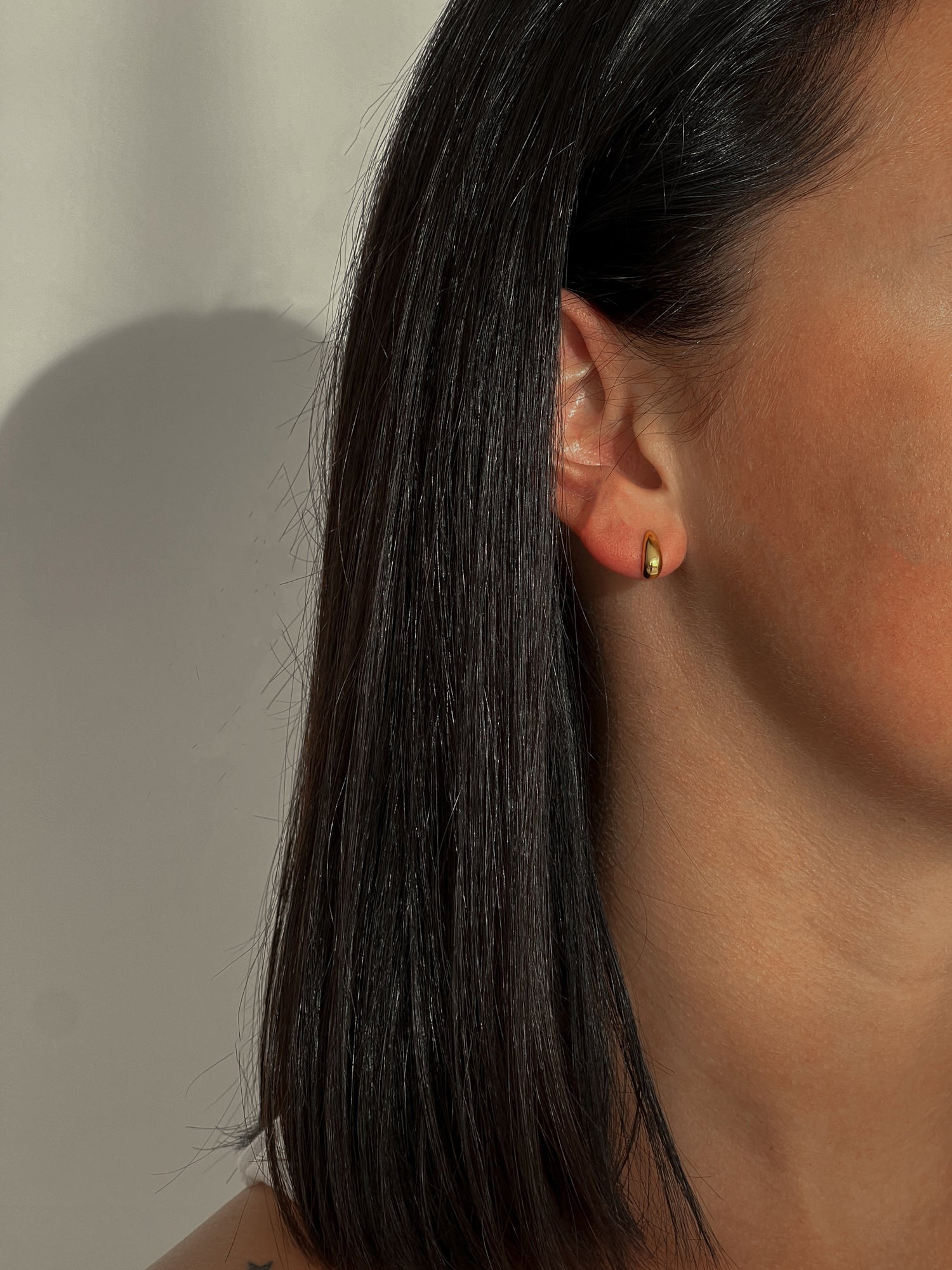 Auksinės spalvos veriamieji auskarai. Pagaminta iš nerūdijančio plieno, padengta 1,5 mikrono PVD auksu, o tai reiškia, kad paauksavimas išlieka ilgiau bei yra atsparus vandeniui.