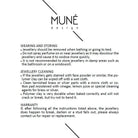 Visiems mūsų papuošalams taikoma 2 metų garantija. Jei laikėtės priežiūros rekomendacijų, tačiau papuošalas sulūžo, išbluko ar atsikabino auskaro dalis – parašykite mums el. paštu info@mune.lt, pridėkite nuotraukas ir trumpą paaiškinimą. Įvertinę situaciją, pasirūpinsime papuošalo taisymu arba pakeitimu.