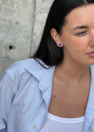 Rankų darbo veriamieji auskarai. Pagaminti su meile. Matmenys: 0,9 x 0,9 cm.