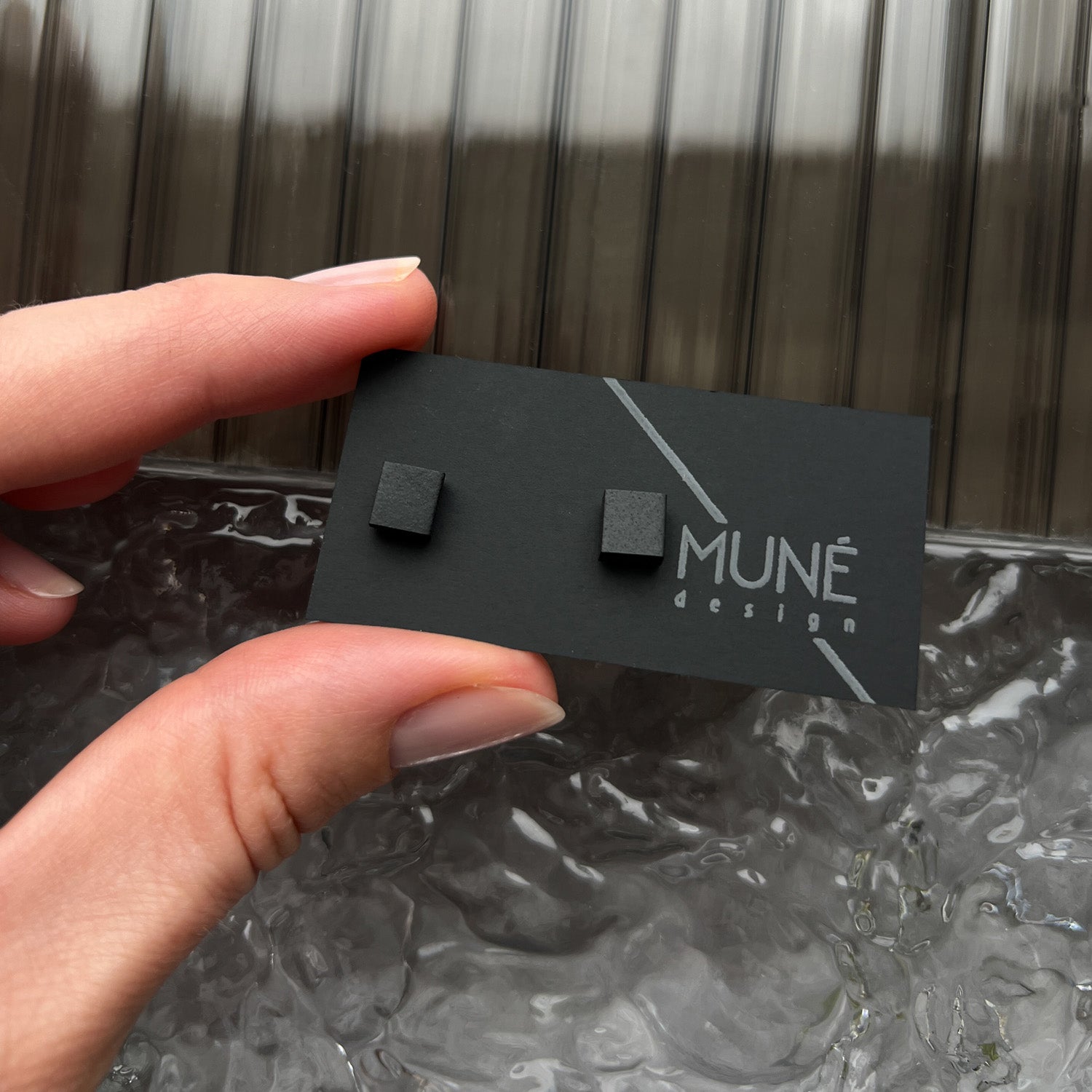 Maži geometriniai rankų darbo veriamieji auskarai. Itin lengvi. Medžiagos: polimerinis molis, nealergizuojantys, aukštos kokybės įvėrimai be nikelio. Skersmuo – apie 5-6 mm.