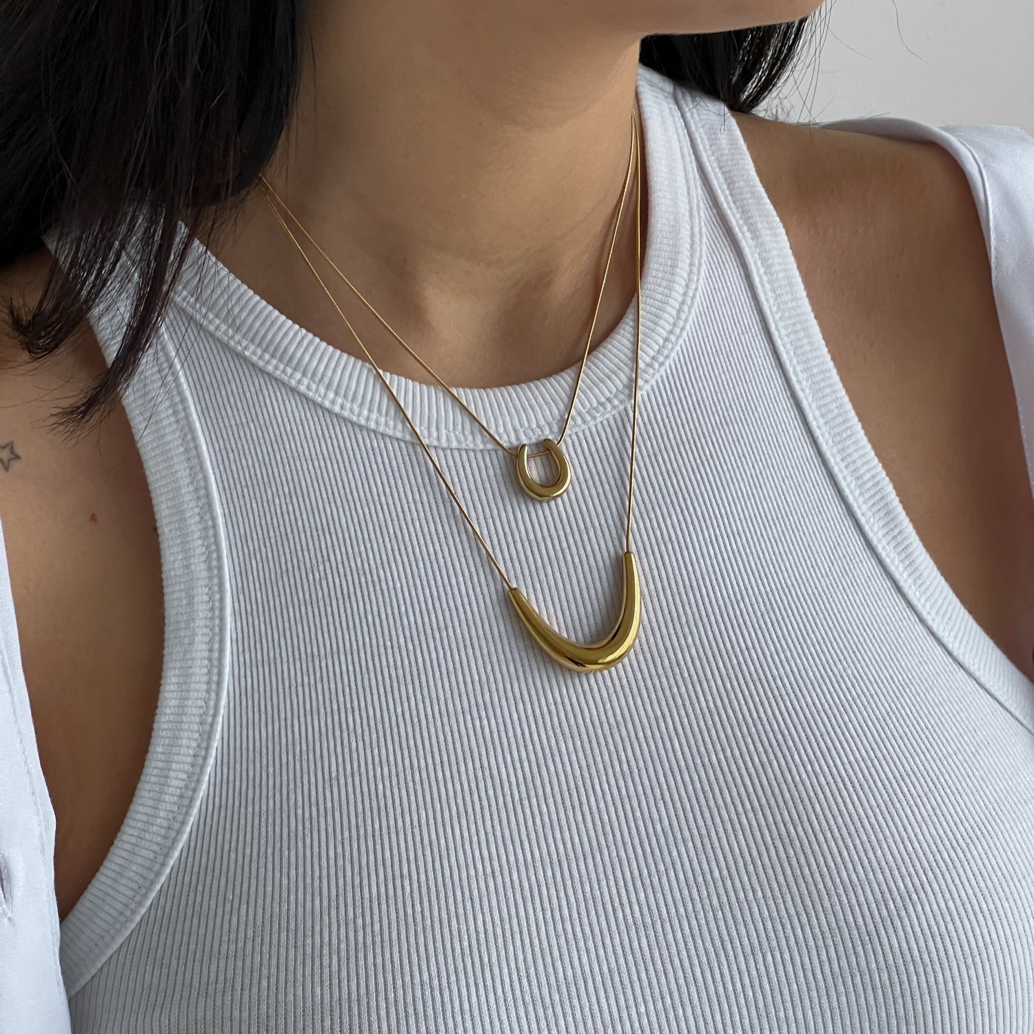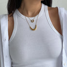 Minimalistinė, elegantiška, nerūdijančio plieno kaklo grandinėlė. Pagaminta iš nerūdijančio plieno, padengta 1,5 mikrono PVD auksu, o tai reiškia, kad paauksavimas išlieka ilgiau bei yra atsparus vandeniui. Ilgis – 40 + 5 cm.
