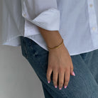 Moderni minimalistinė apyrankė. Pagaminta iš nerūdijančio plieno, padengta 1,5 mikrono PVD auksu, o tai reiškia, kad paauksavimas išlieka ilgiau bei yra atsparus vandeniui.