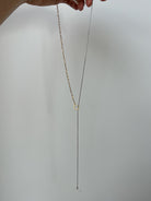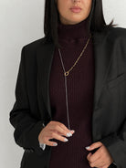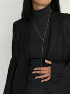 Minimalistinis, elegantiškas, ilgas kaklo papuošalas. Pagaminta iš nerūdijančio plieno, padengto 1,5 mikrono PVD auksu, o tai reiškia, kad paauksavimas išlieka ilgiau bei yra atsparus vandeniui.