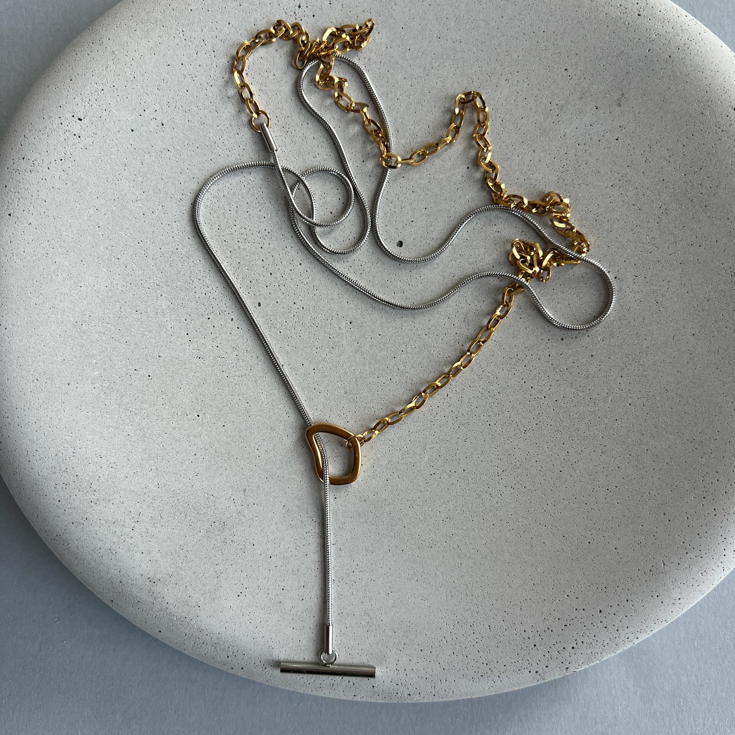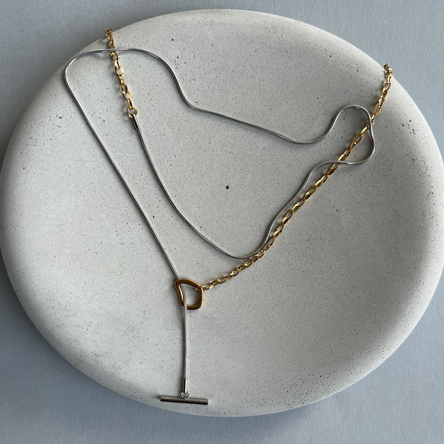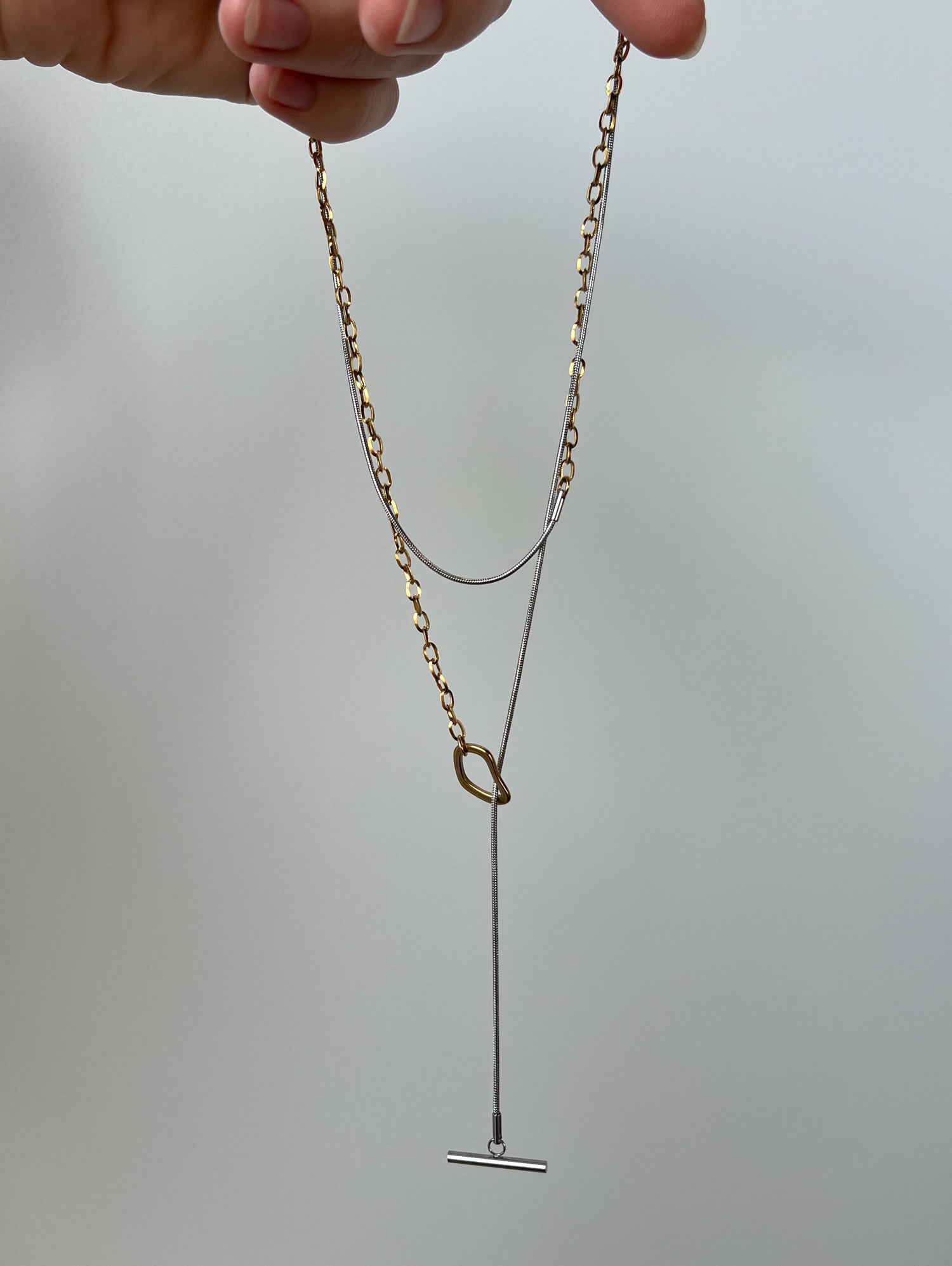 Minimalistinis dviejų spalvų ilgas kaklo papuošalas