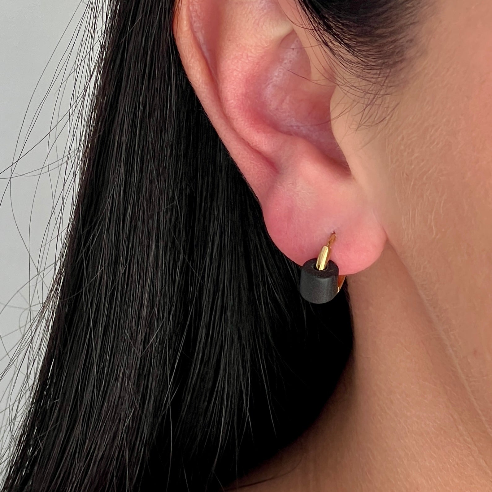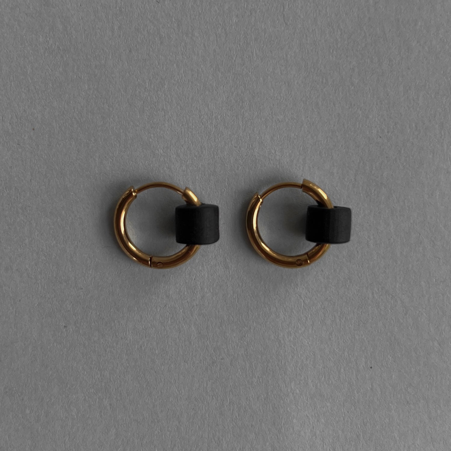 Subtilūs ir elegantiški auskarai-rinkutės su nuimama polimerinio molio detale. Pagaminta iš nerūdijančio plieno, padengto 1,5 mikrono PVD auksu, o tai reiškia, kad paauksavimas išlieka ilgiau bei yra atsparus vandeniui.