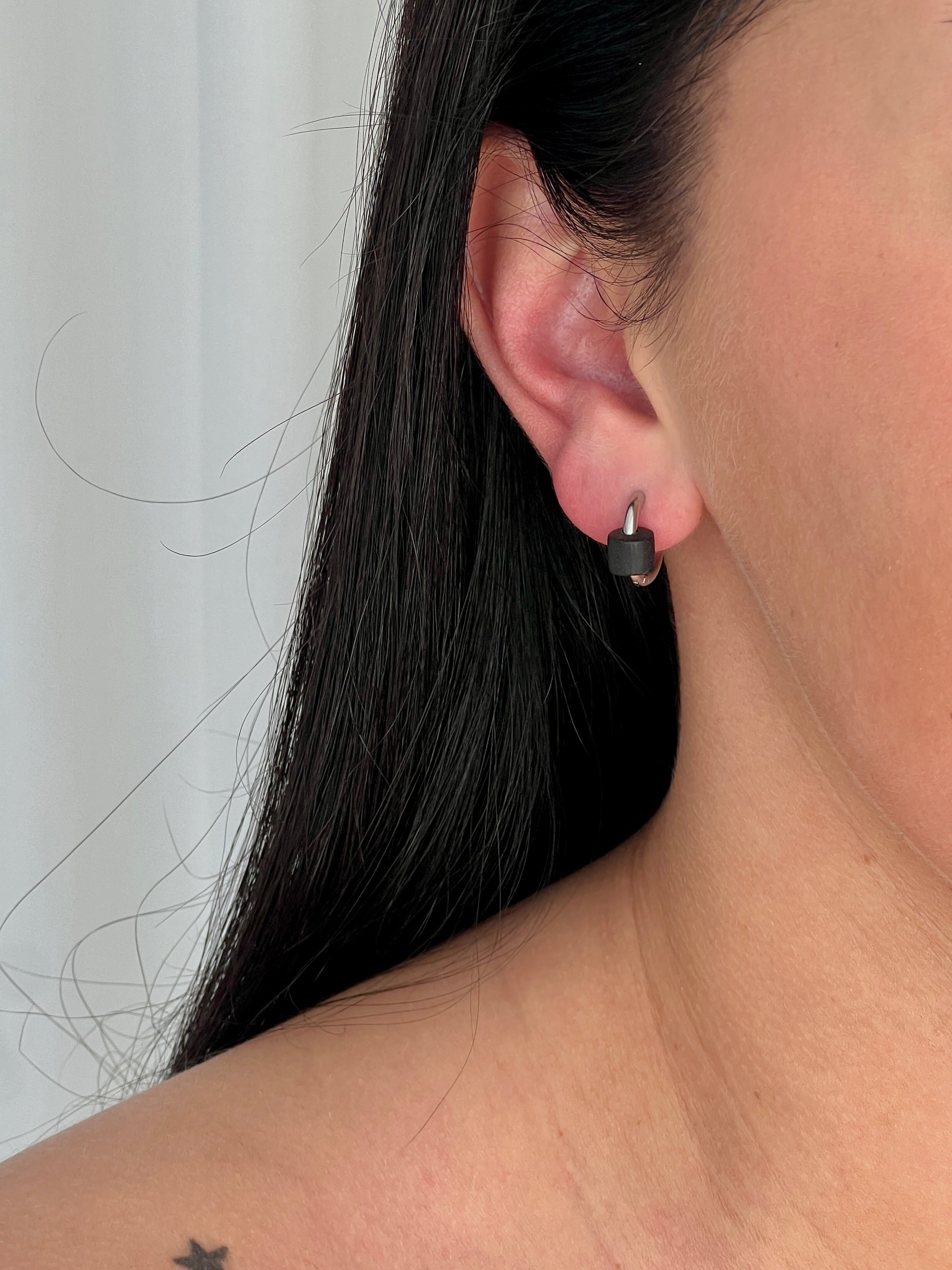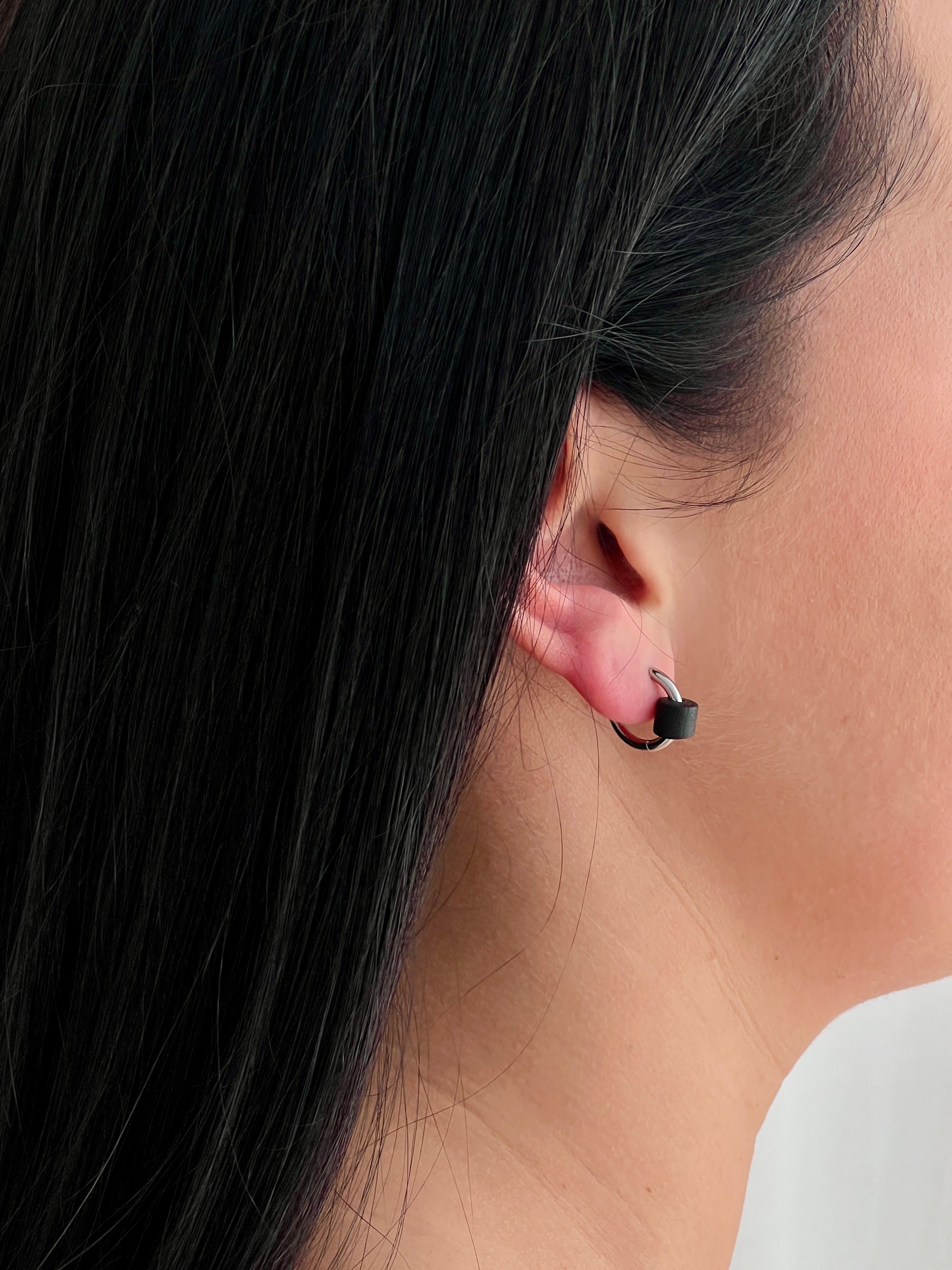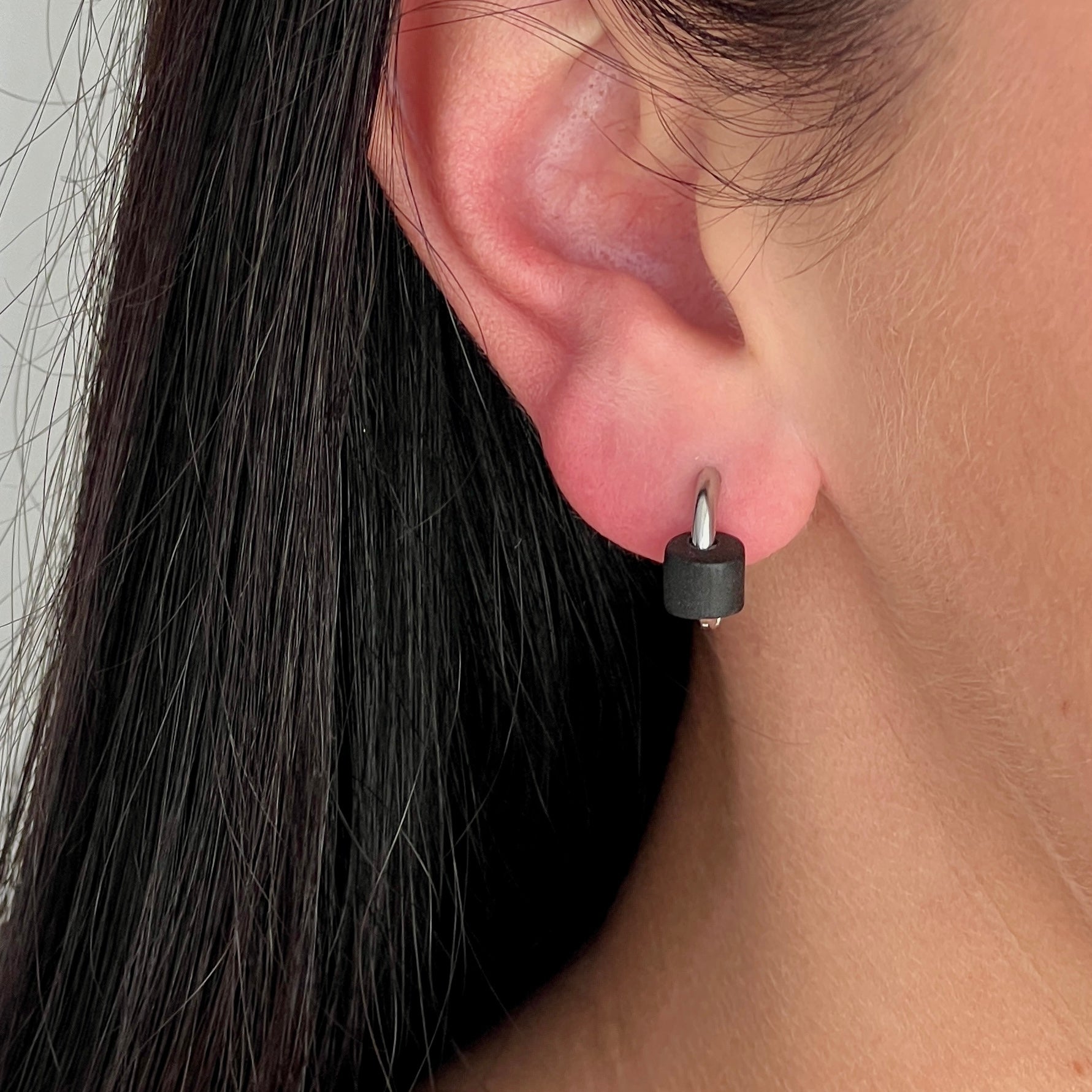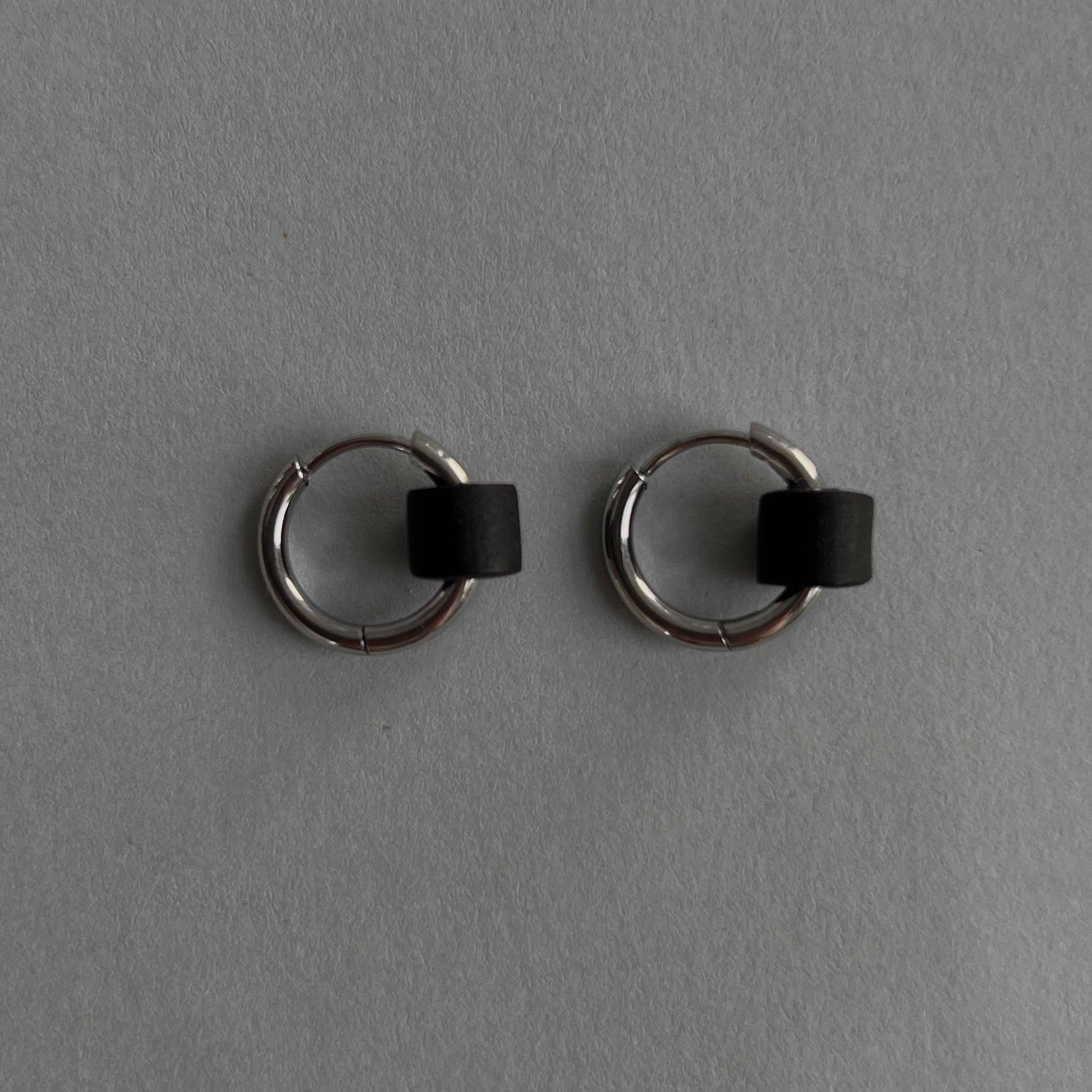 Subtilūs ir elegantiški auskarai-rinkutės su nuimama polimerinio molio detale. Pagaminta iš nerūdijančio plieno.