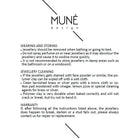 Visiems mūsų papuošalams taikoma 2 metų garantija. Jei laikėtės priežiūros rekomendacijų, tačiau papuošalas sulūžo, išbluko ar atsikabino auskaro dalis – parašykite mums el. paštu info@mune.lt, pridėkite nuotraukas ir trumpą paaiškinimą. Įvertinę situaciją, pasirūpinsime papuošalo taisymu arba pakeitimu.