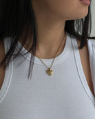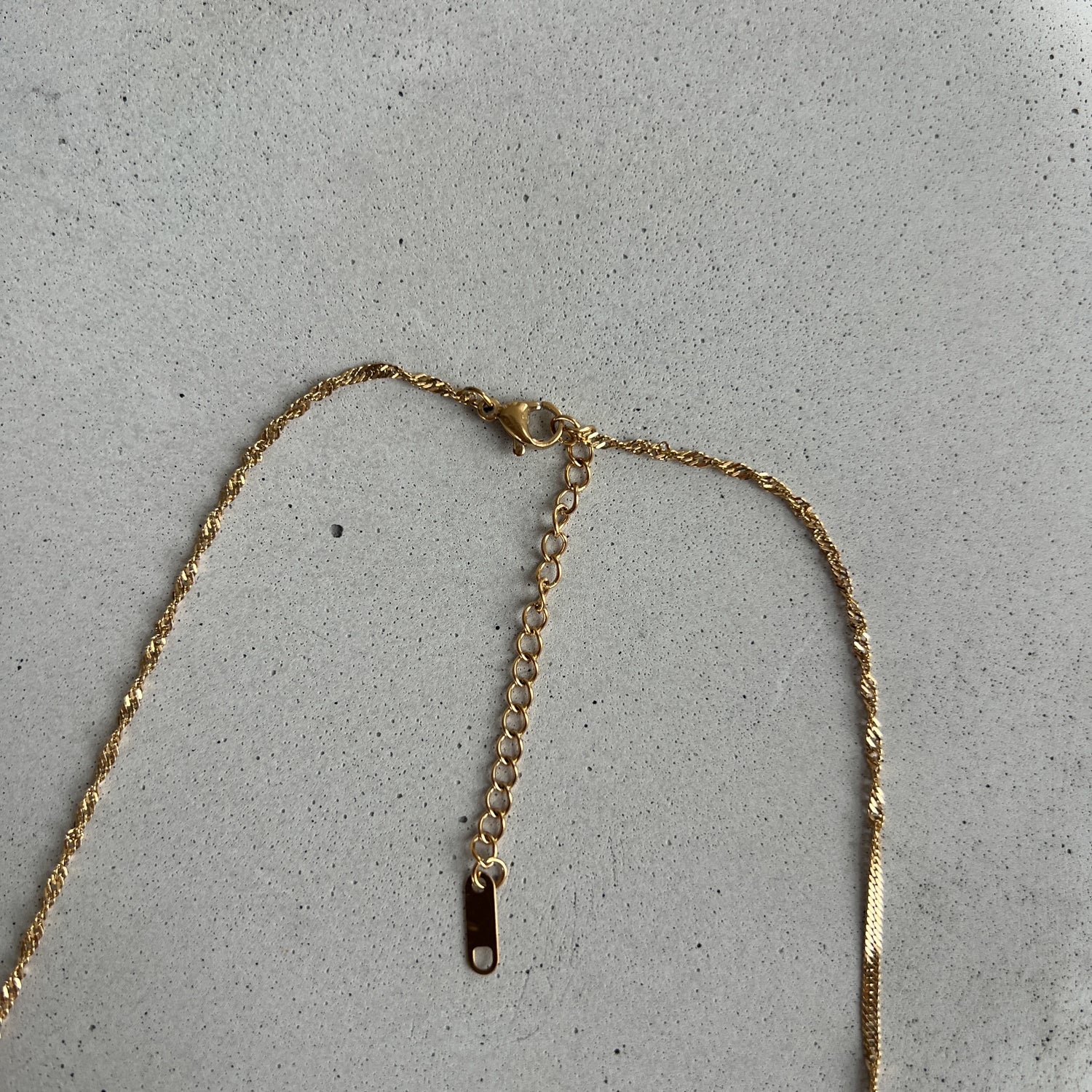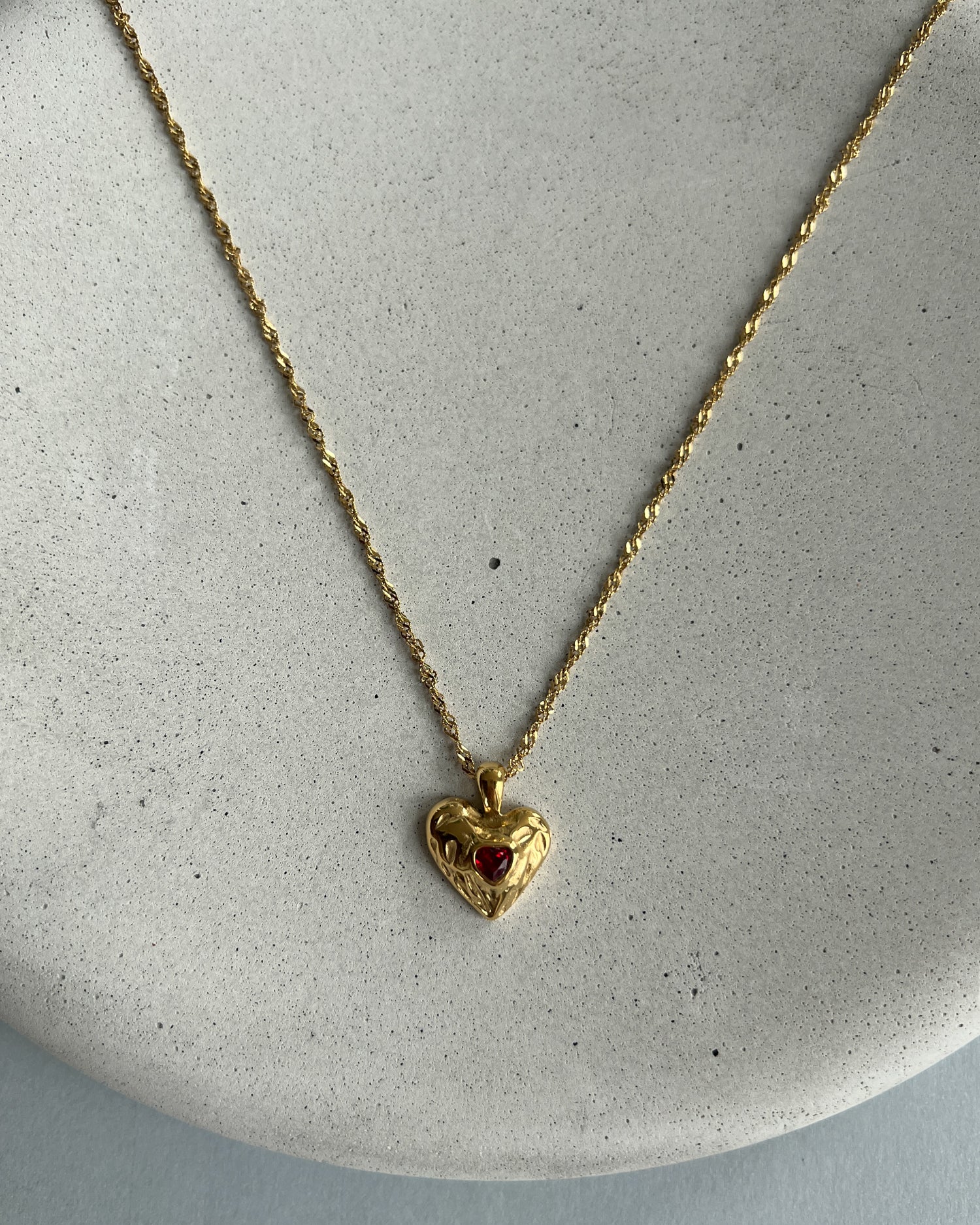Minimalistinis, elegantiškas, nerūdijančio plieno vėrinys su širdelės formos pakabuku ir cirkoniu. Pagaminta iš nerūdijančio plieno, padengta 1,5 mikrono PVD auksu, o tai reiškia, kad paauksavimas išlieka ilgiau bei yra atsparus vandeniui. Ilgis: 40,5 + 5,5 cm.