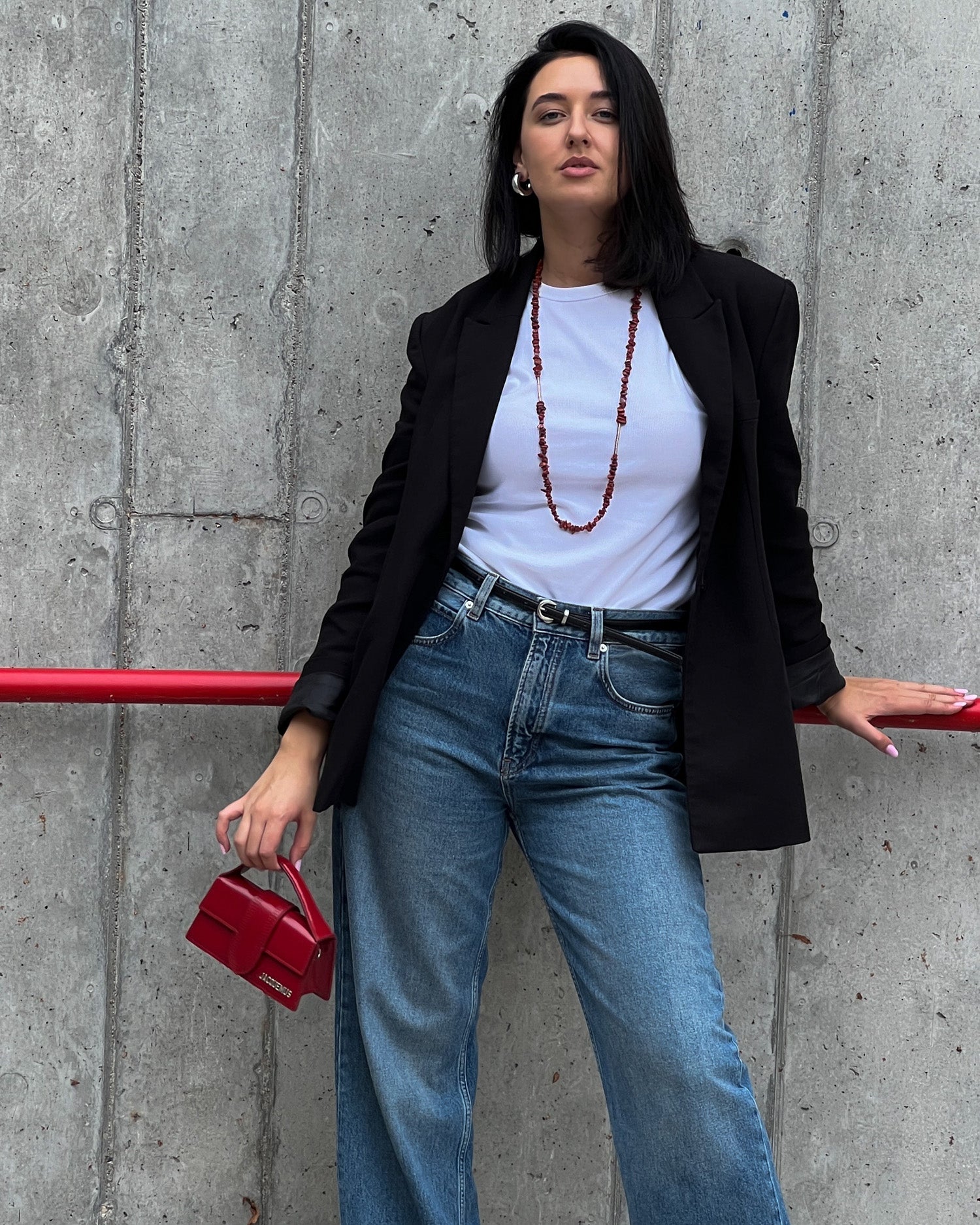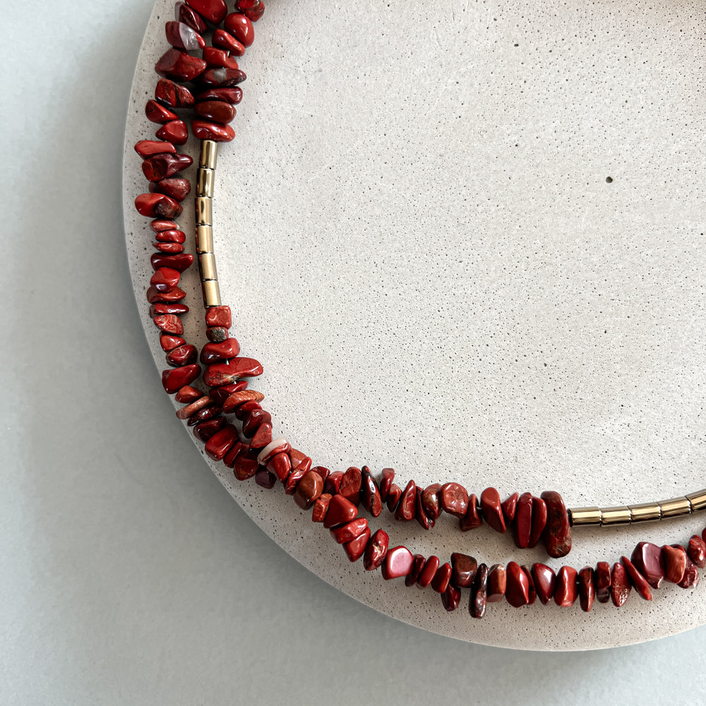 Ilgas raudono jaspio vėrinys