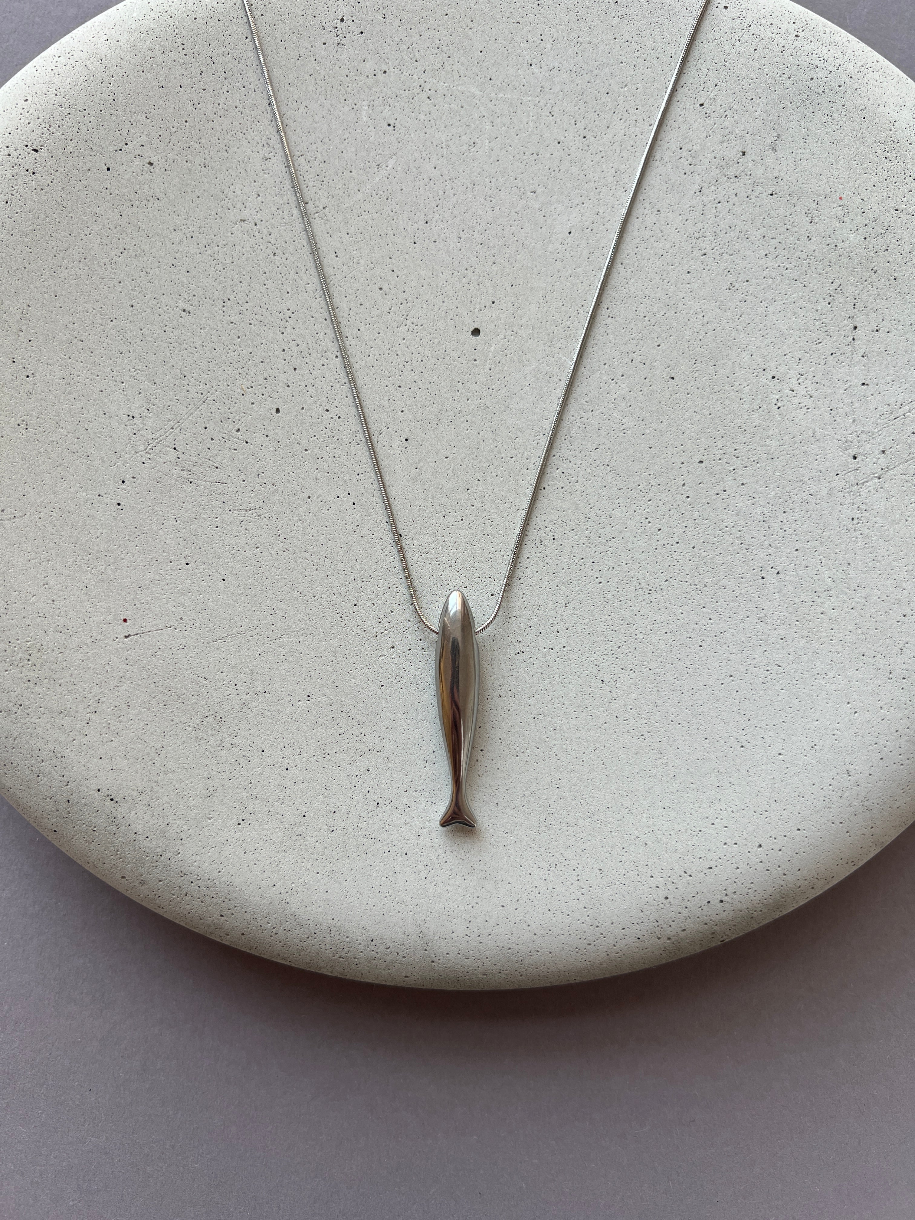 Švarus siluetas ir subtili simbolika. Glotnus, pailgas žuvies formos pakabukas krenta lengvai ir natūraliai, išryškindamas kaklo liniją. Minimalistinis dizainas leidžia jį nešioti kasdien – prie marškinėlių, švarko ar lengvos suknelės. Ilgis 40 cm + 6 cm