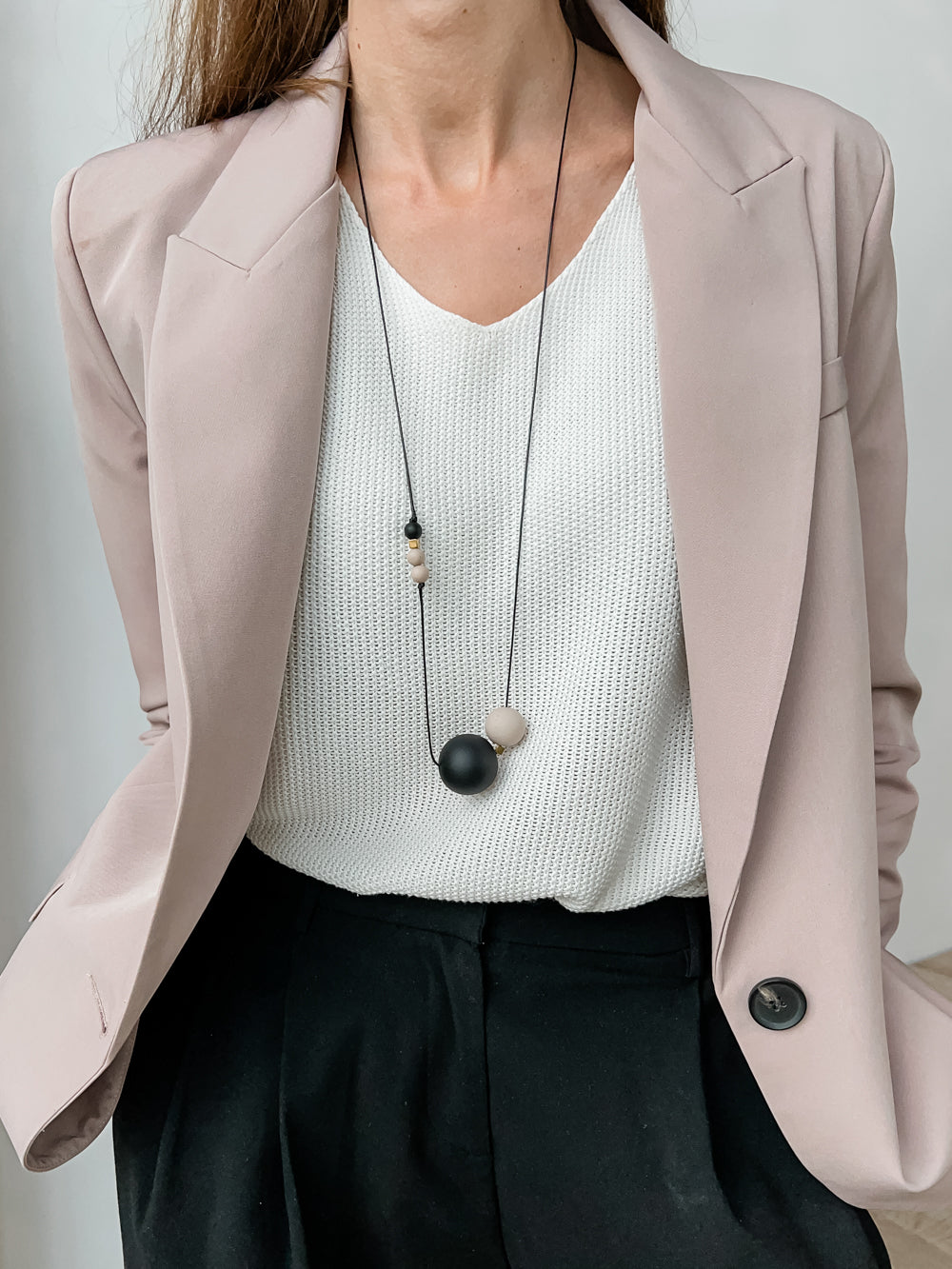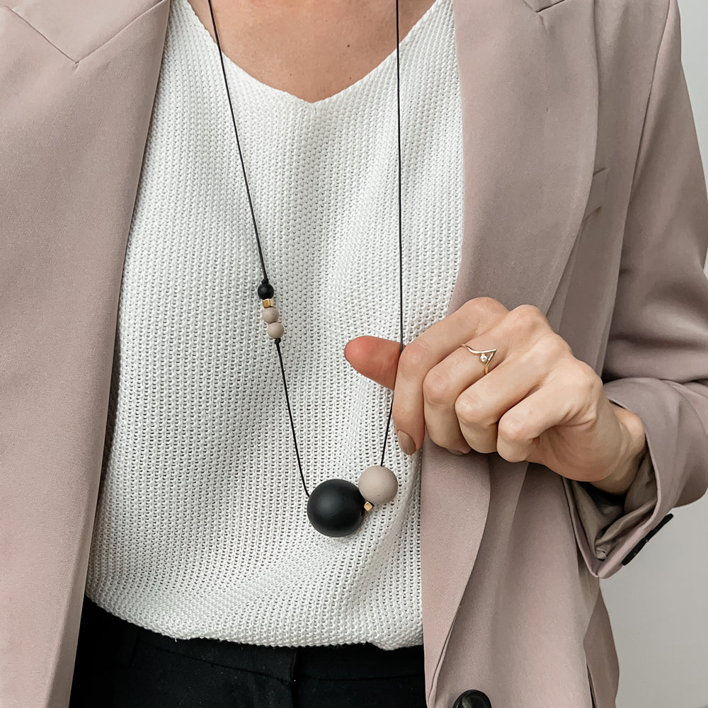 Polimerinio molio kaklo papuošalai – lengvi, modernūs ir kruopščiai rankomis sukurti.Subtilios formos ir kontrastingos detalės kuria išraiškingą, bet neperkrautą įvaizdį.Toms, kurios ieško išskirtinio, patogaus ir ilgaamžio akcento kasdienai.