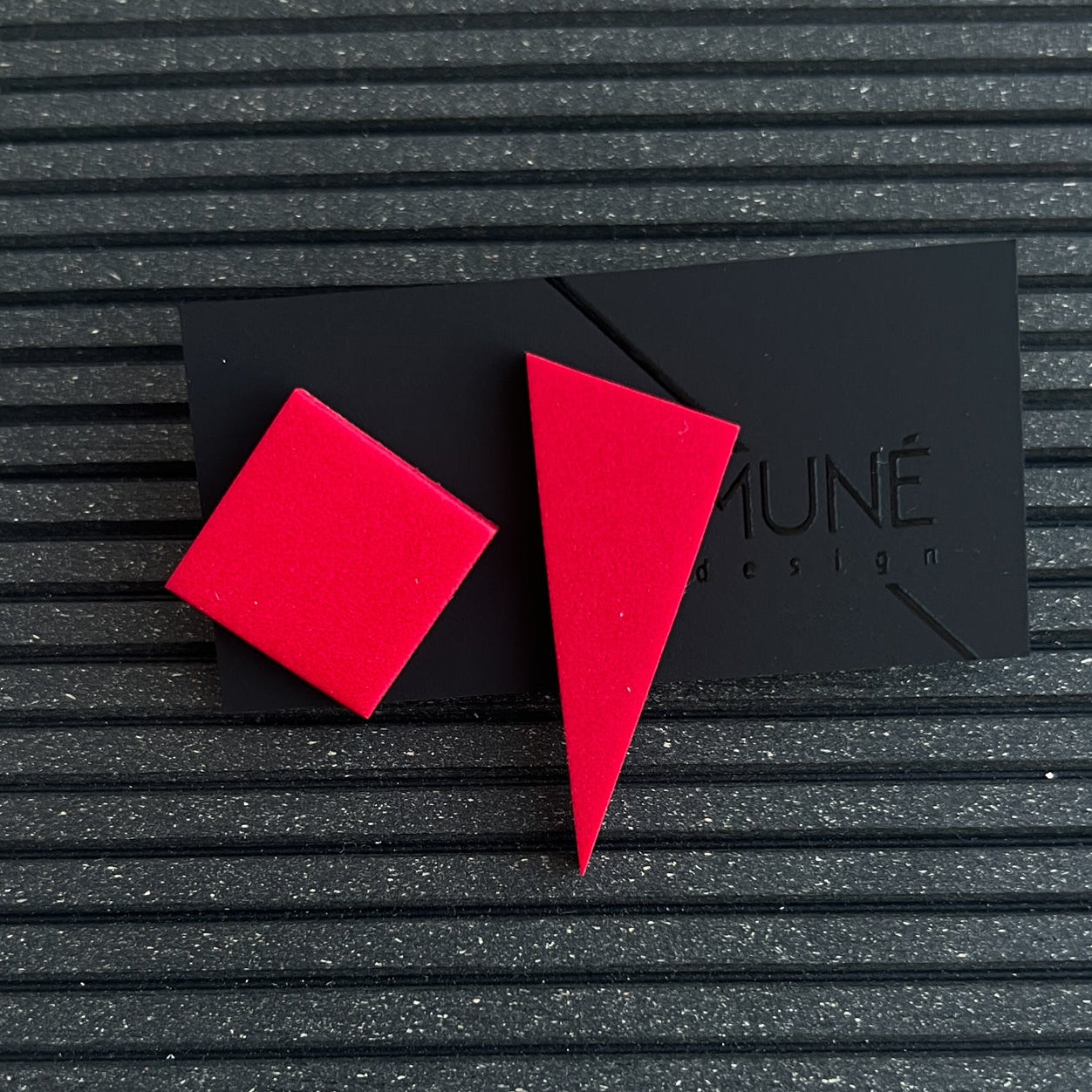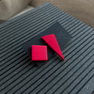 Geometriniai modernūs veriami auskarai. Itin lengvi. Medžiagos: polimerinis molis, nealergizuojantys, aukštos kokybės įvėrimai be nikelio. Matmenys: trikampis – apie 40 x 35 x 15 mm, kvadratas – apie 15 x 15 mm.
