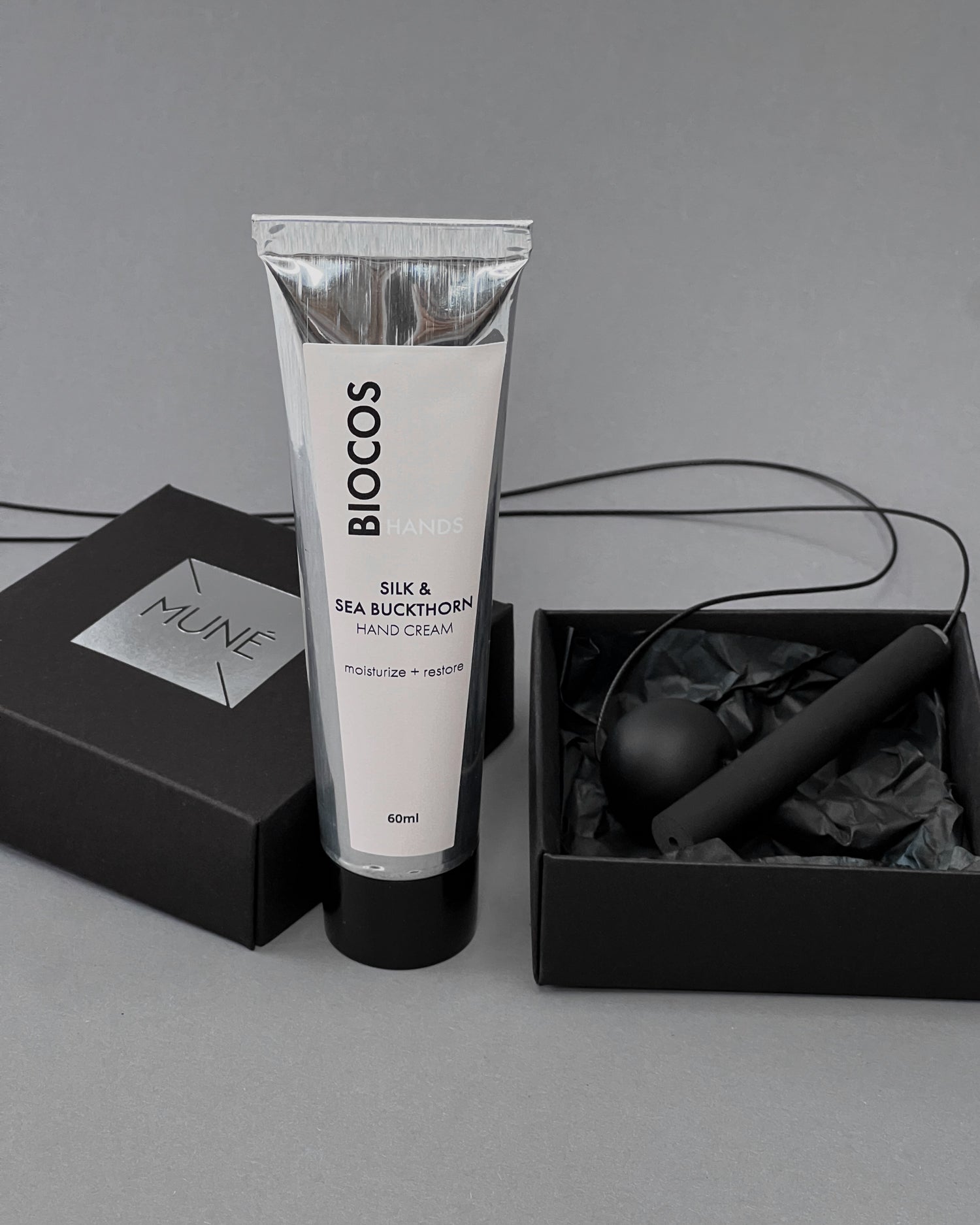 Kiekviename rinkinyje derinama natūrali „Biocos“ kosmetika ir universaliausi MUNÉ papuošalai, lengvai pritaikomi kasdienai.