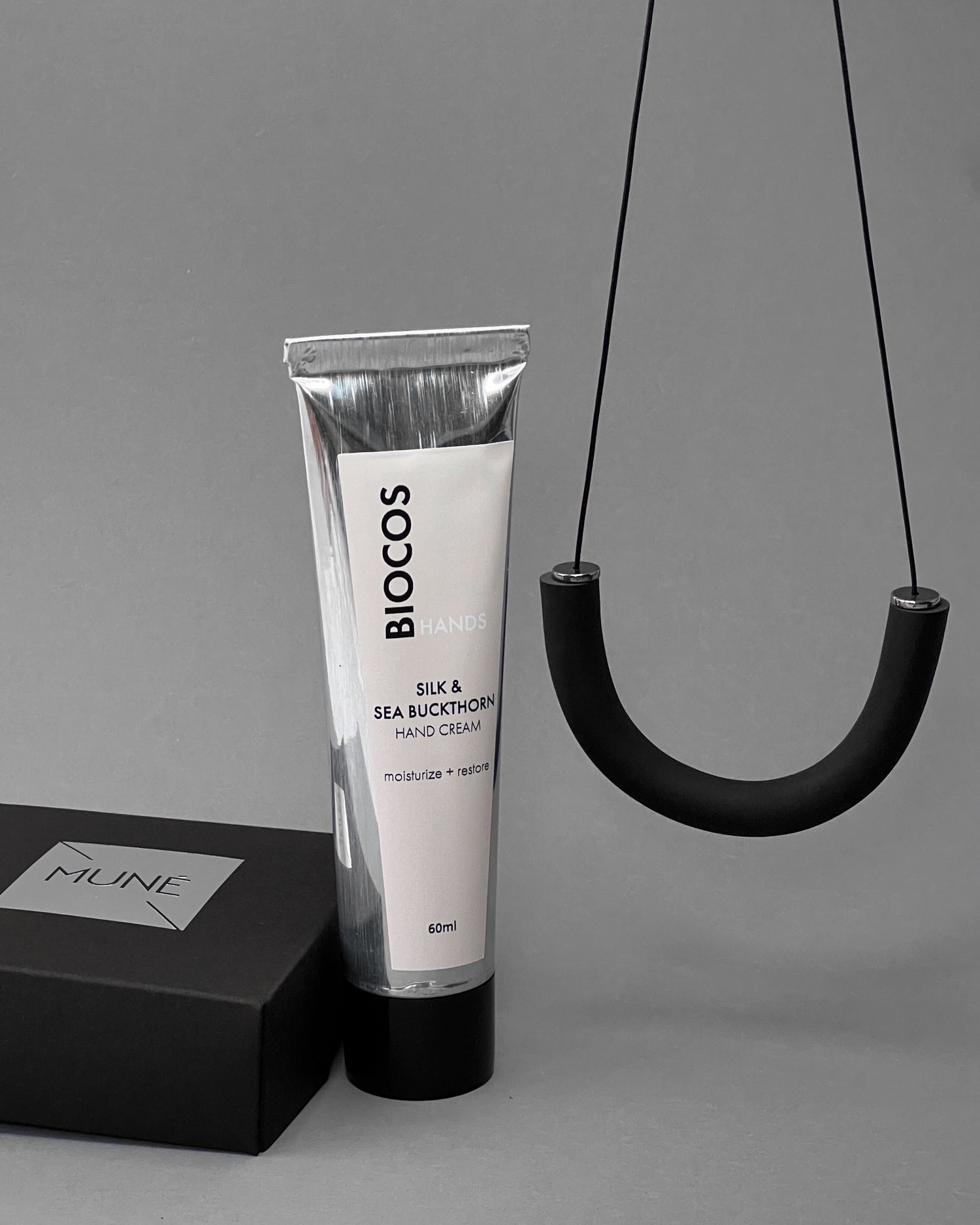 Rinkinys: natūralus rankų kremas ir kaklo papuošalas U_black