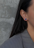 Rankų darbo veriami auskarai. Matmenys: 5-6 mm. Medžiagos: polimerinis molis, sidabriniai įvėrimai.