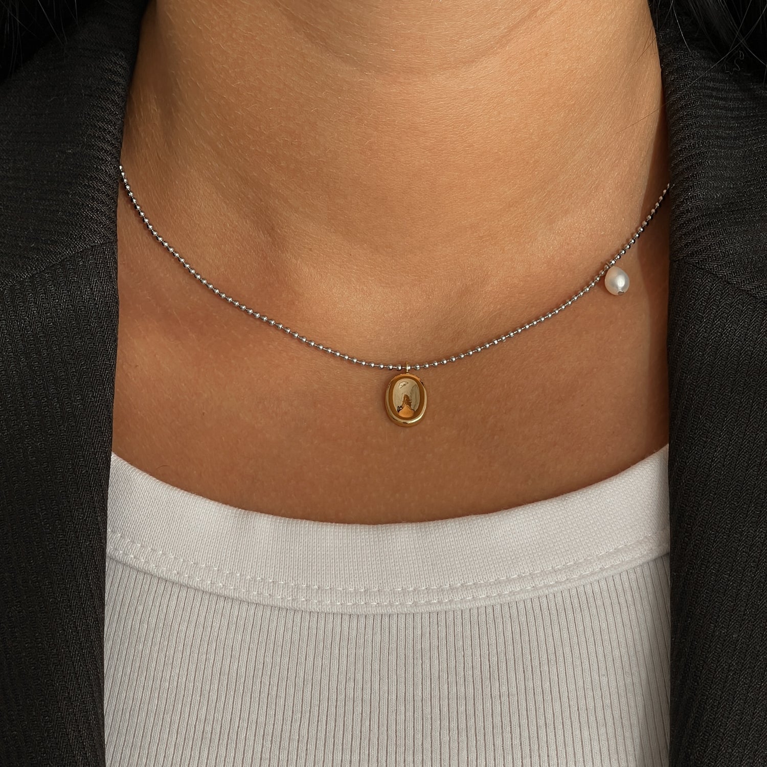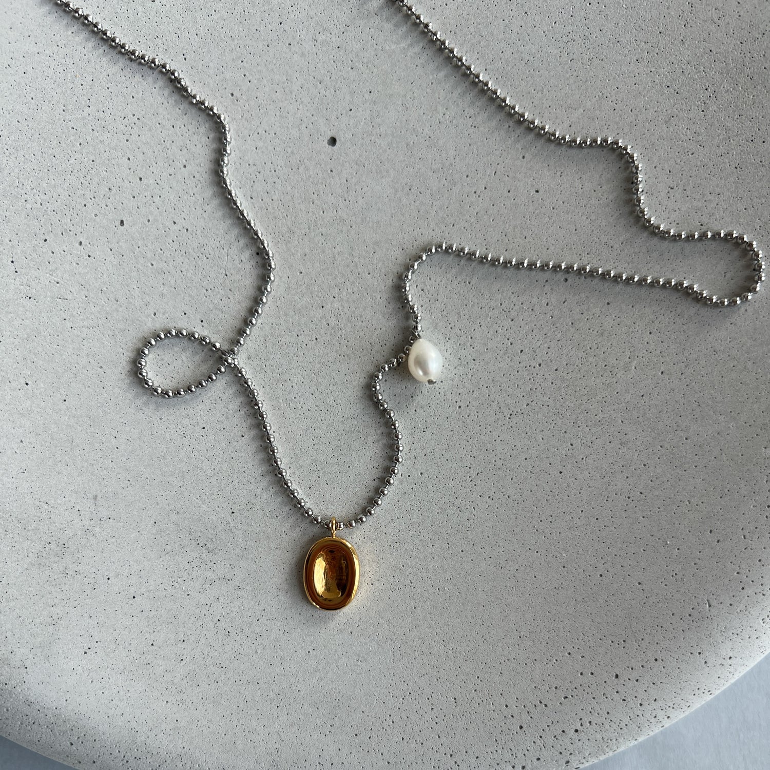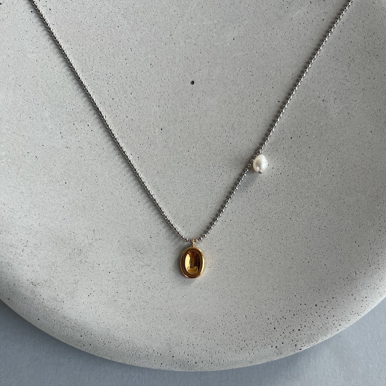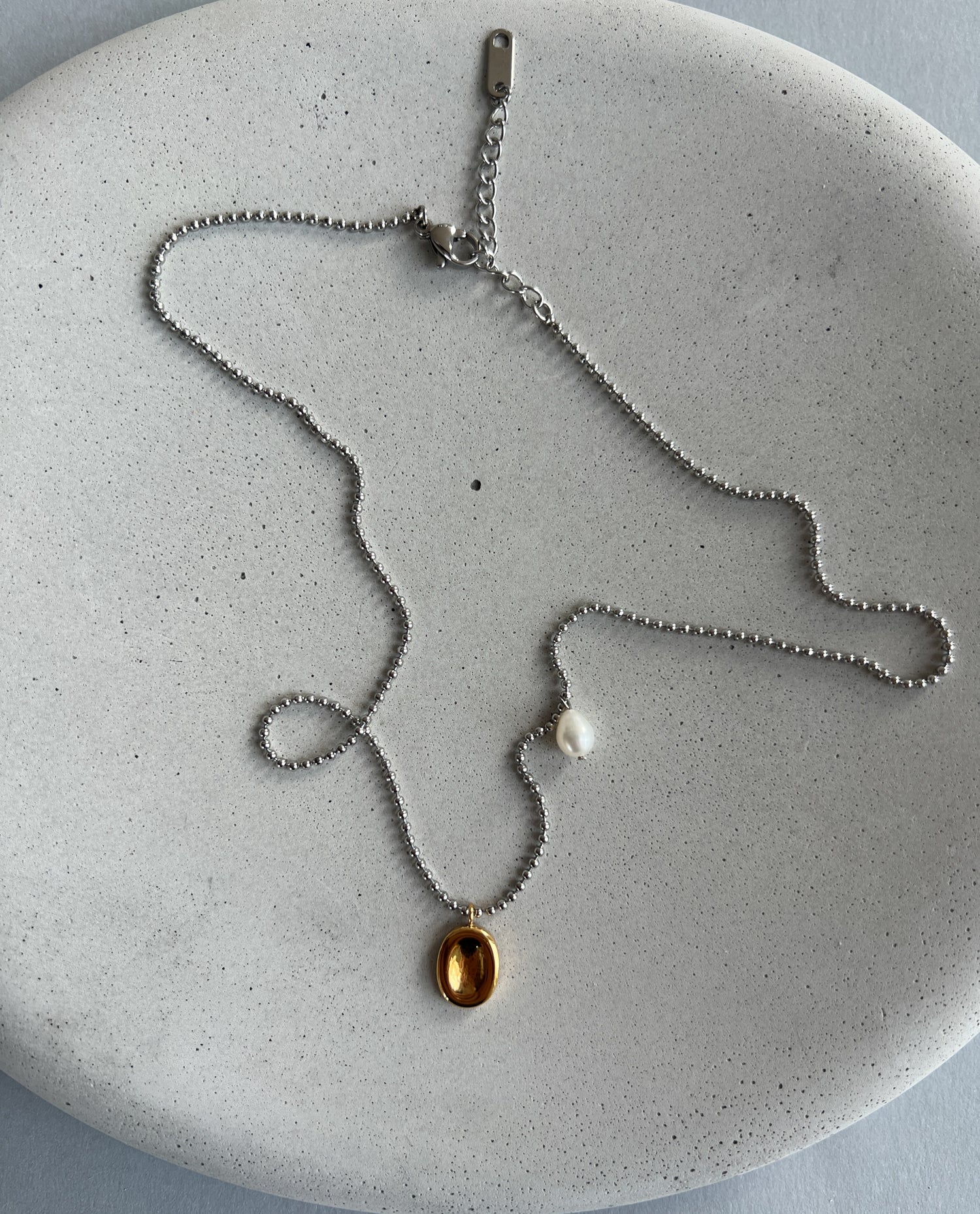 Minimalistinė grandinėlė su auksiniu pakabuku ir perlu
